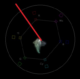 YUVベクトルスコープは、RGBパレードと共に、色被り補正の作業で併用して参照すると、ベストなスコープです。