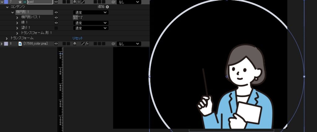 イラスト素材を配置し、イラストを囲むように楕円形ツールで正円を描きます。