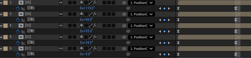 作成したコンポジションを複製し、残り4つのシェイプを作成します。