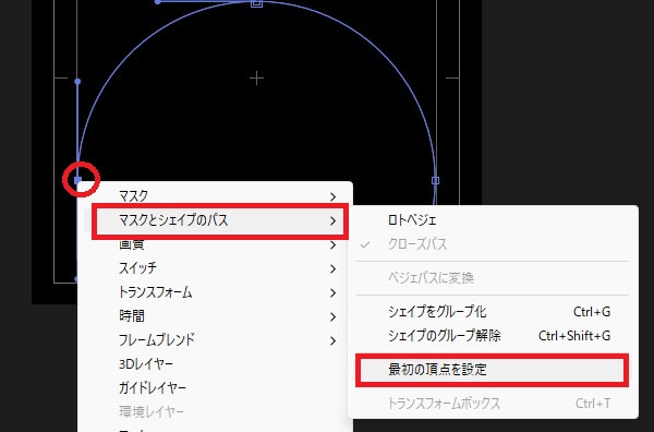 右クリック > マスクとシェイプのパス > 最初の頂点を設定