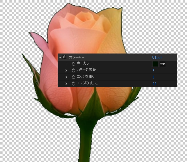 エフェクトから「カラーキー」を適用し、背景の黒を抜きます。